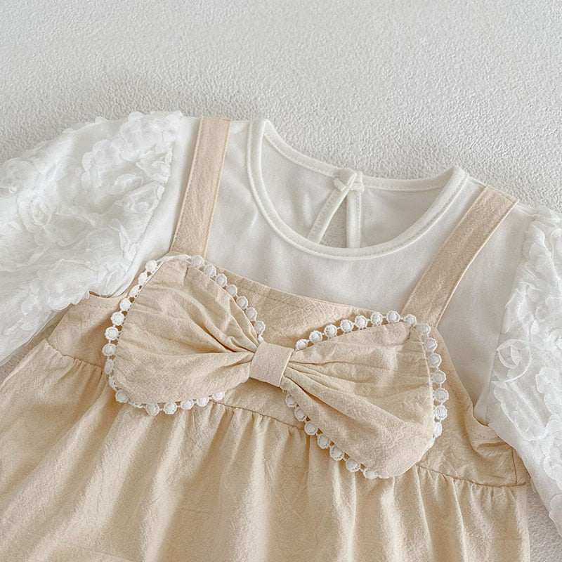 חליפת נסיכות אלגנטית וחמודה עם פפיון מכותנה 👑
