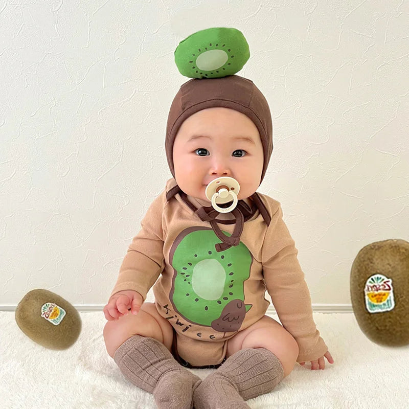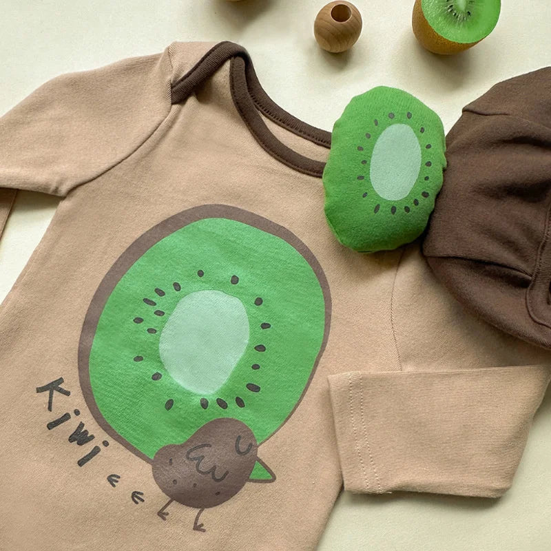 בגד גוף שרוול ארוך מבד כותנה בשילוב כובע קיווי תואם