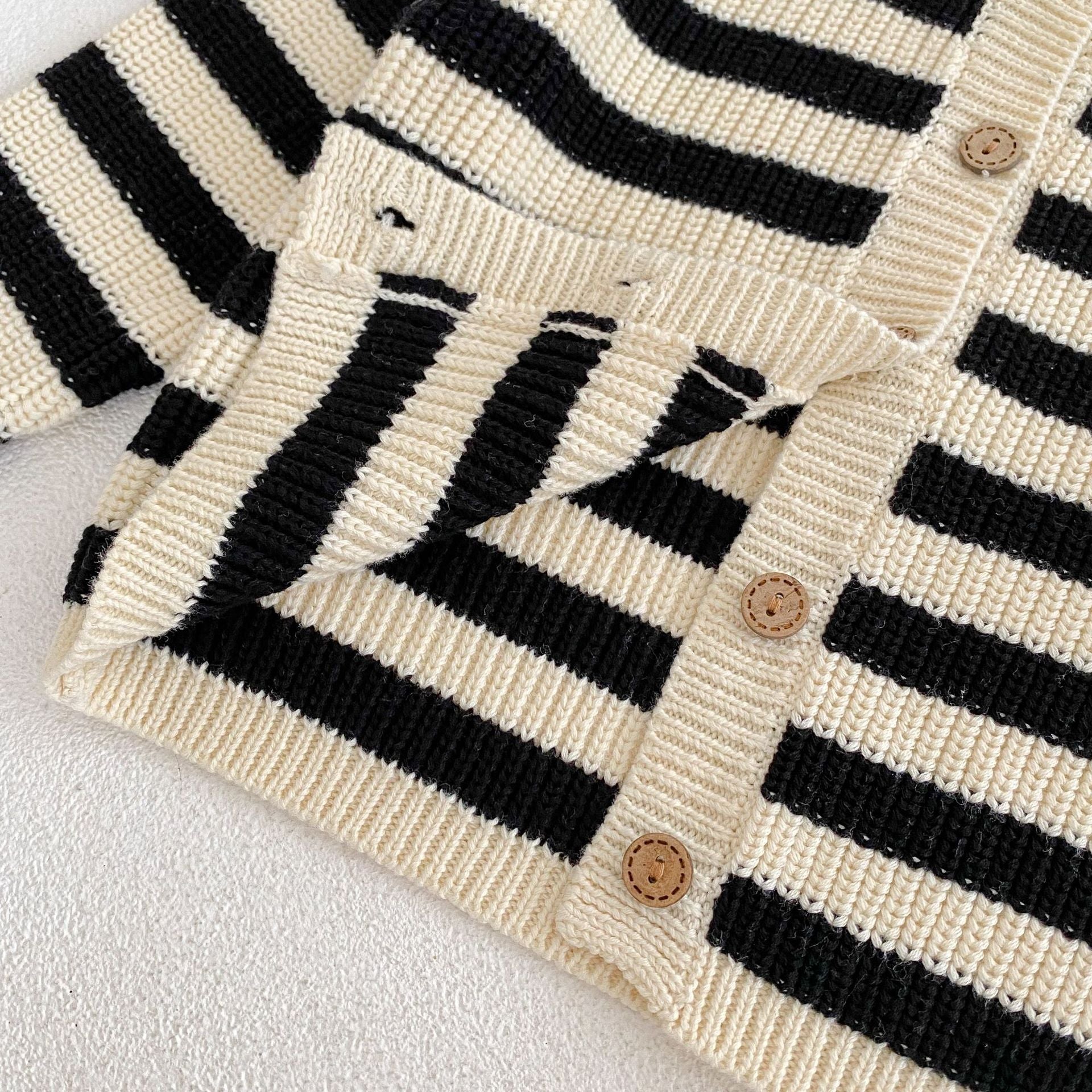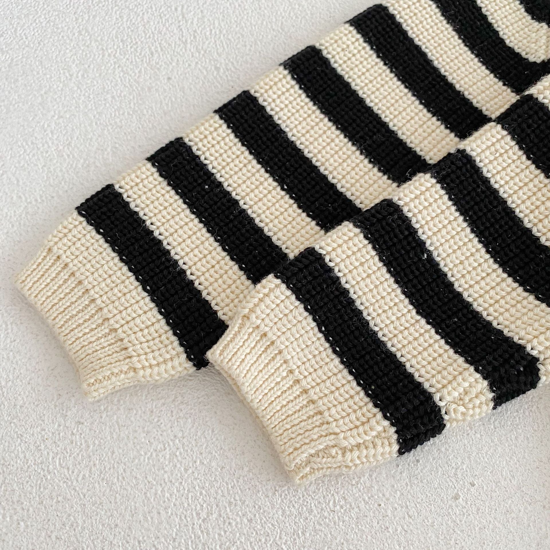 חליפת סריג פסים שחור לבן מכותנה עם שרוולים ארוכים ✨